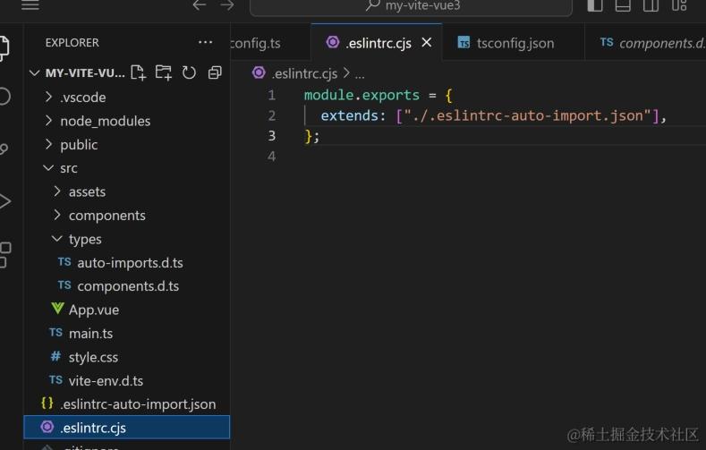 先创建好 /src/types 目录用于存放自动导入函数和组件的TS类型声明文件,再进行自动导入配置